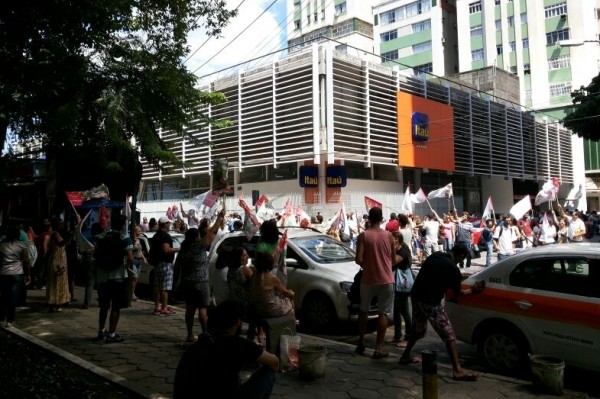 O grupo, de aproximadamente mil pessoas, ocupou todas as faixas da Avenida Jerônimo Monteiro, no Centro de Vitória. O trânsito ficou complicado na região.
